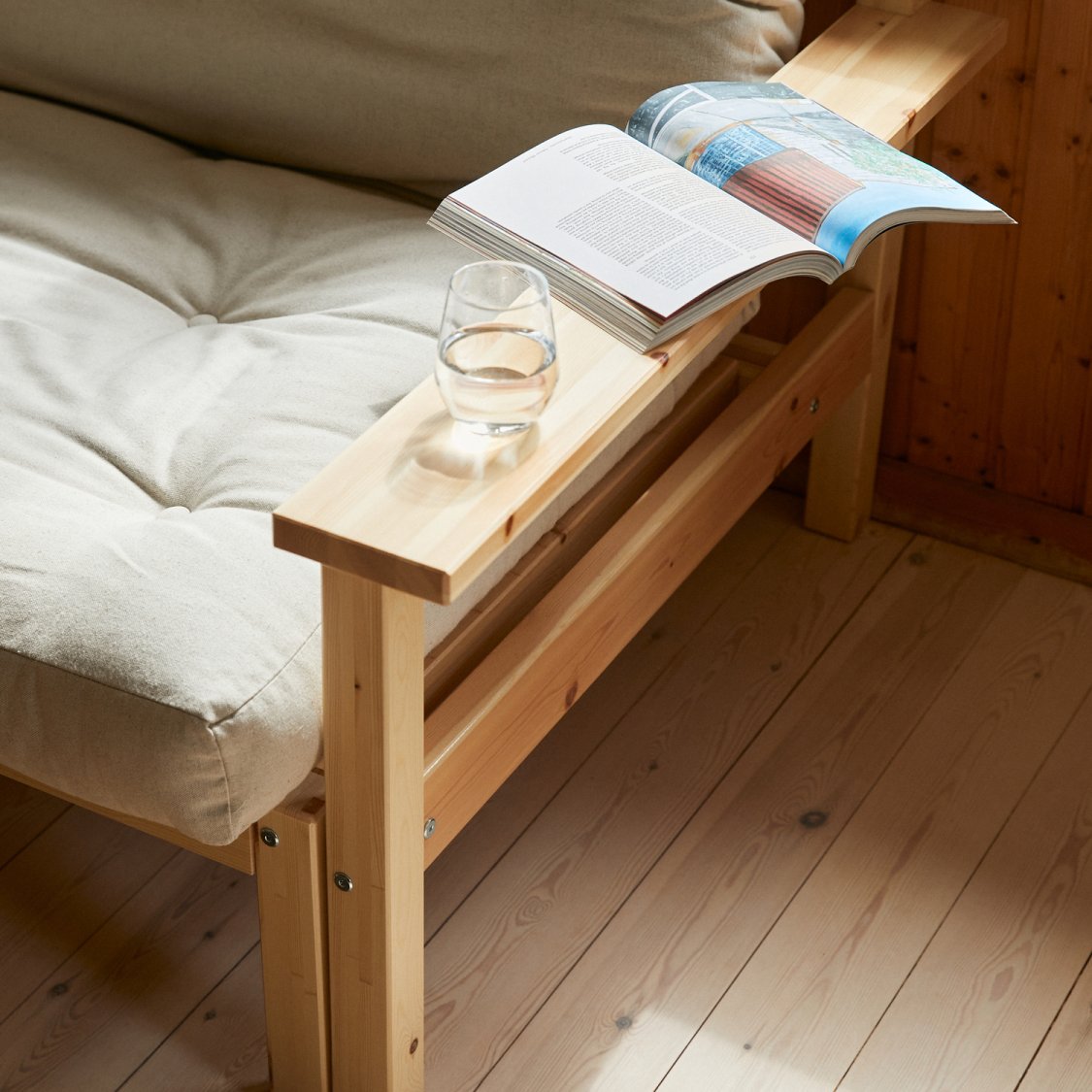 Na sofa pouze futony bez kokosové desky. Doporučuji kombinaci tatami a futonu.